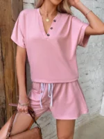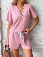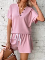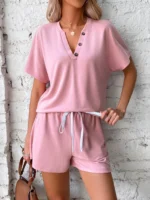 SMY Leisure Themed Gap V-Neck Women’s Two-Piece Set