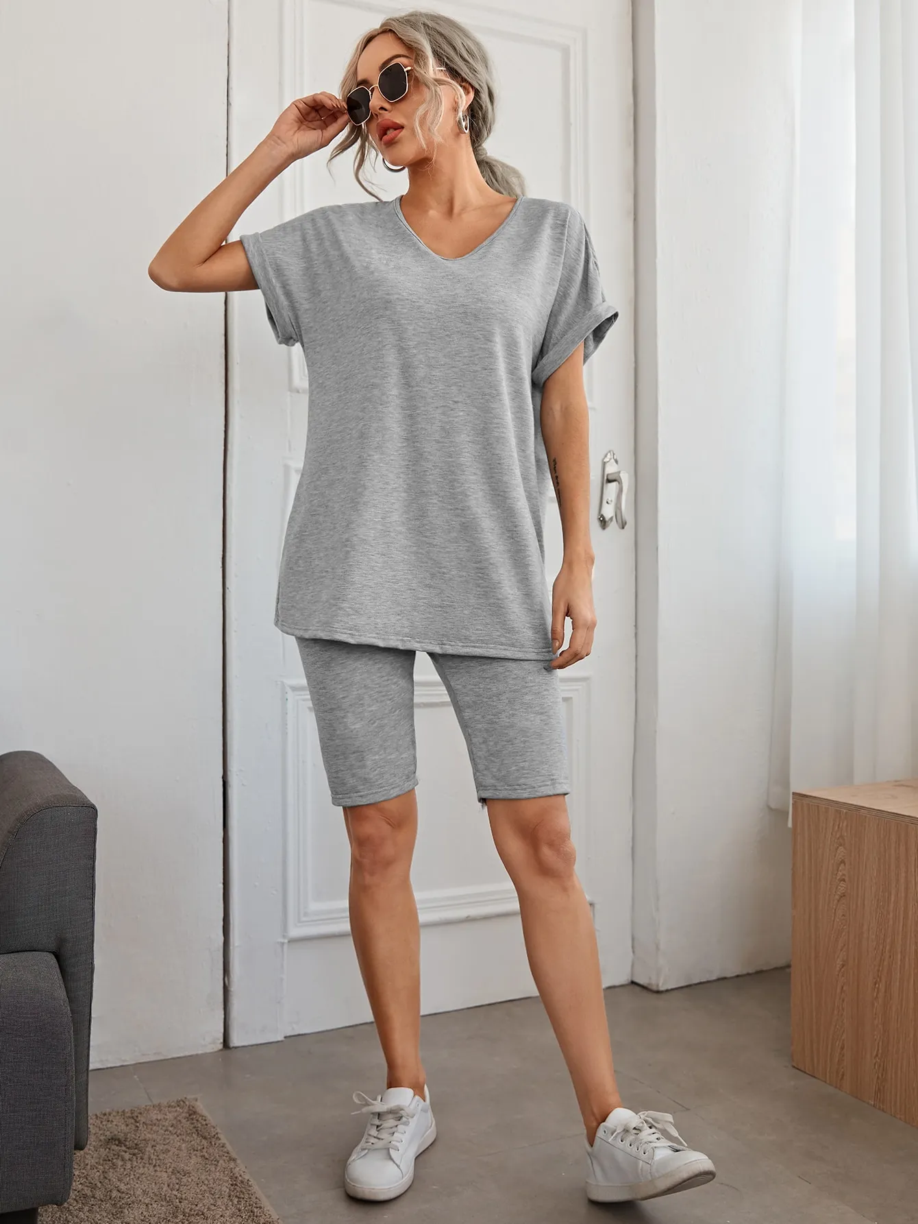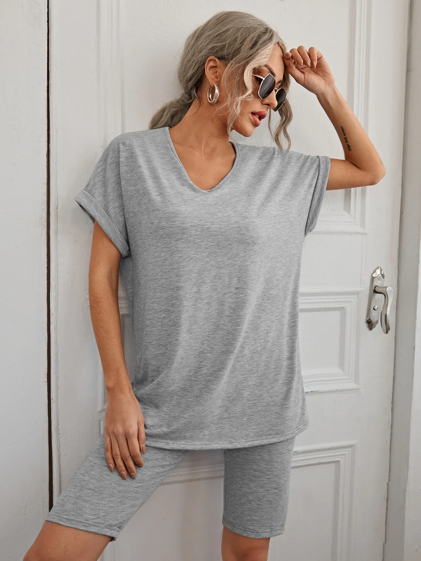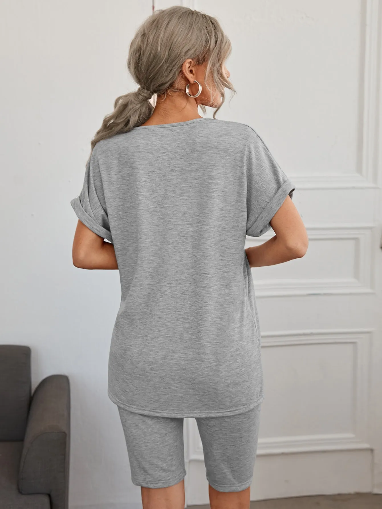 SMY Letter Graphic Drop Shoulder Tee & Biker Shorts