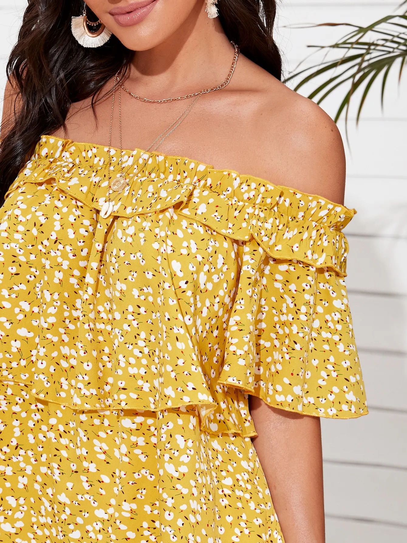 SMY One Collar Off Shoulder Slim Fit Shirt