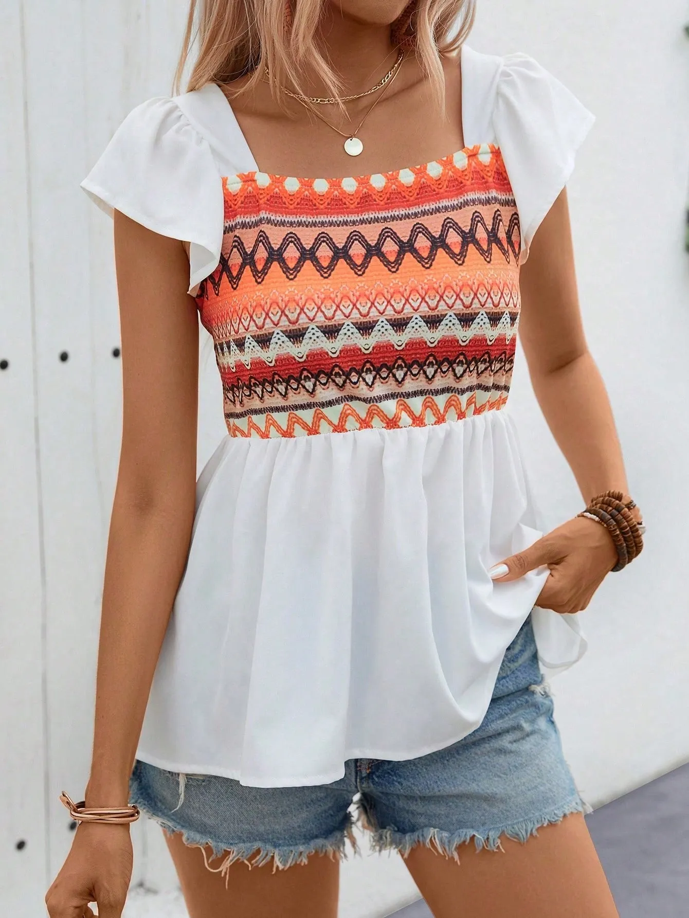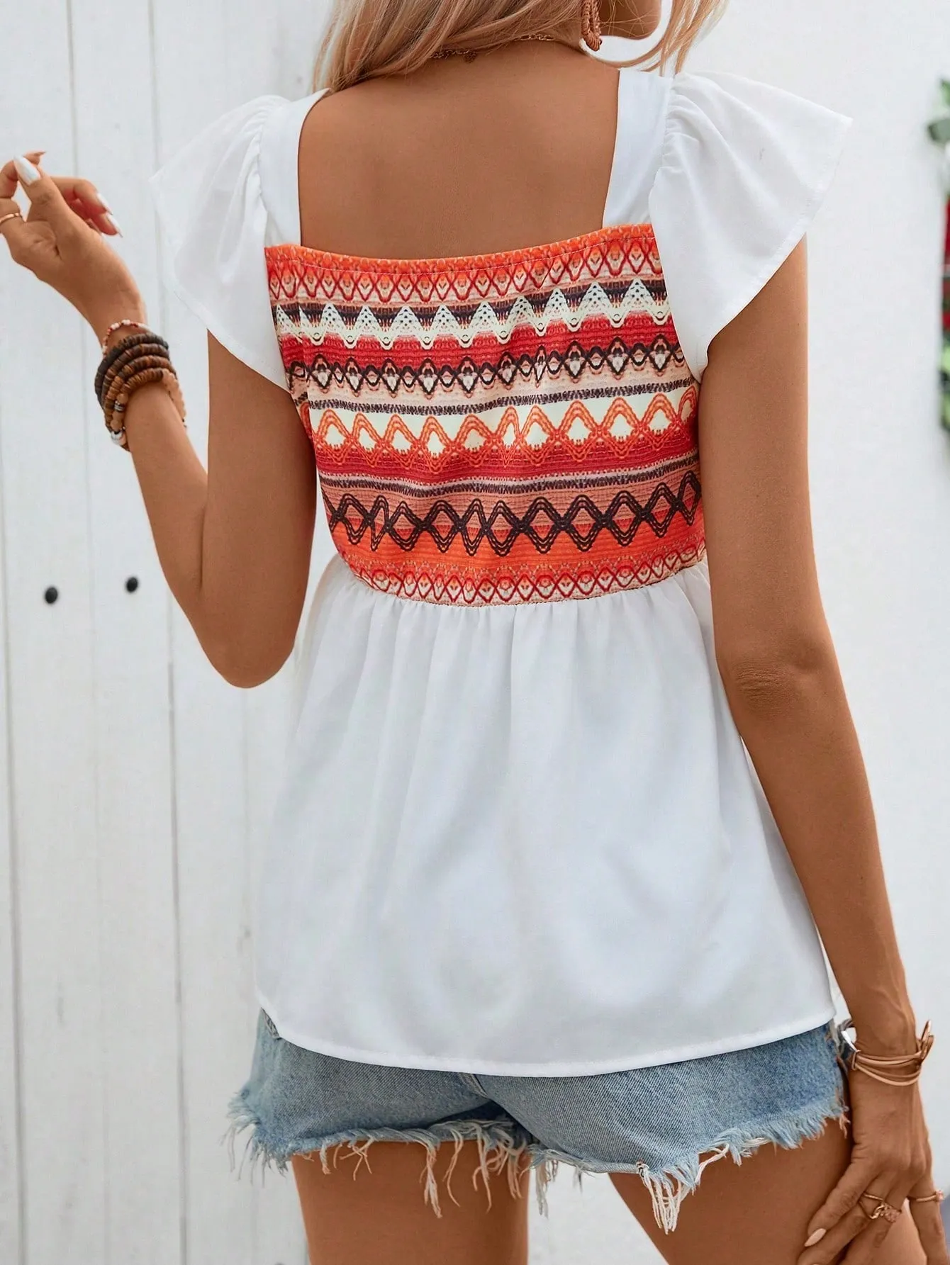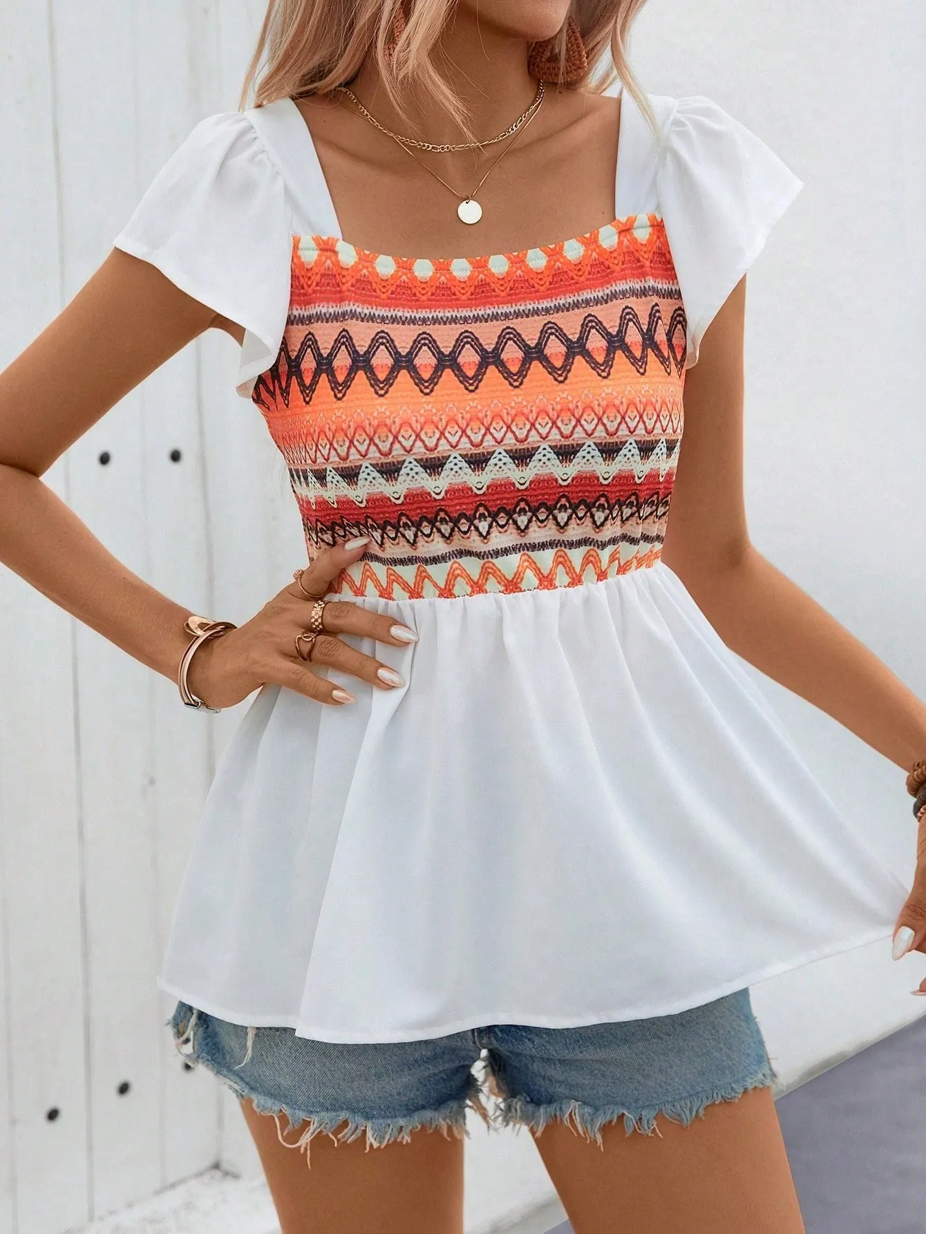 SMY Romantic Trend Square Neck Women’s Patchwork Pattern Shirt