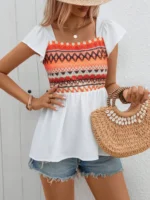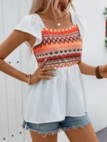 Be the first to review “SMY Romantic Trend Square Neck Women’s Patchwork Pattern Shirt” Cancel reply