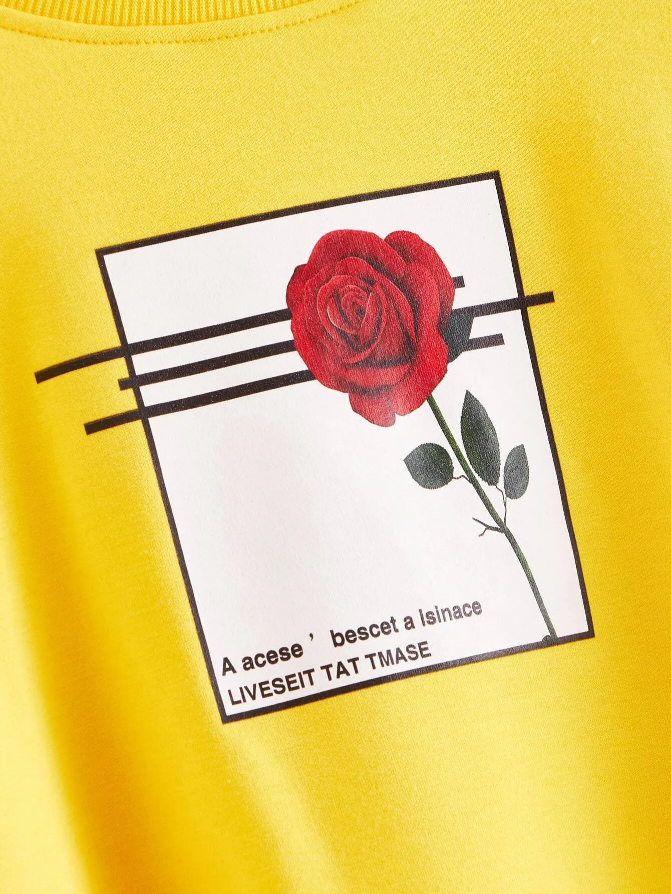SMY Rose Pattern Small Round Neck Regular Printed Hoodie