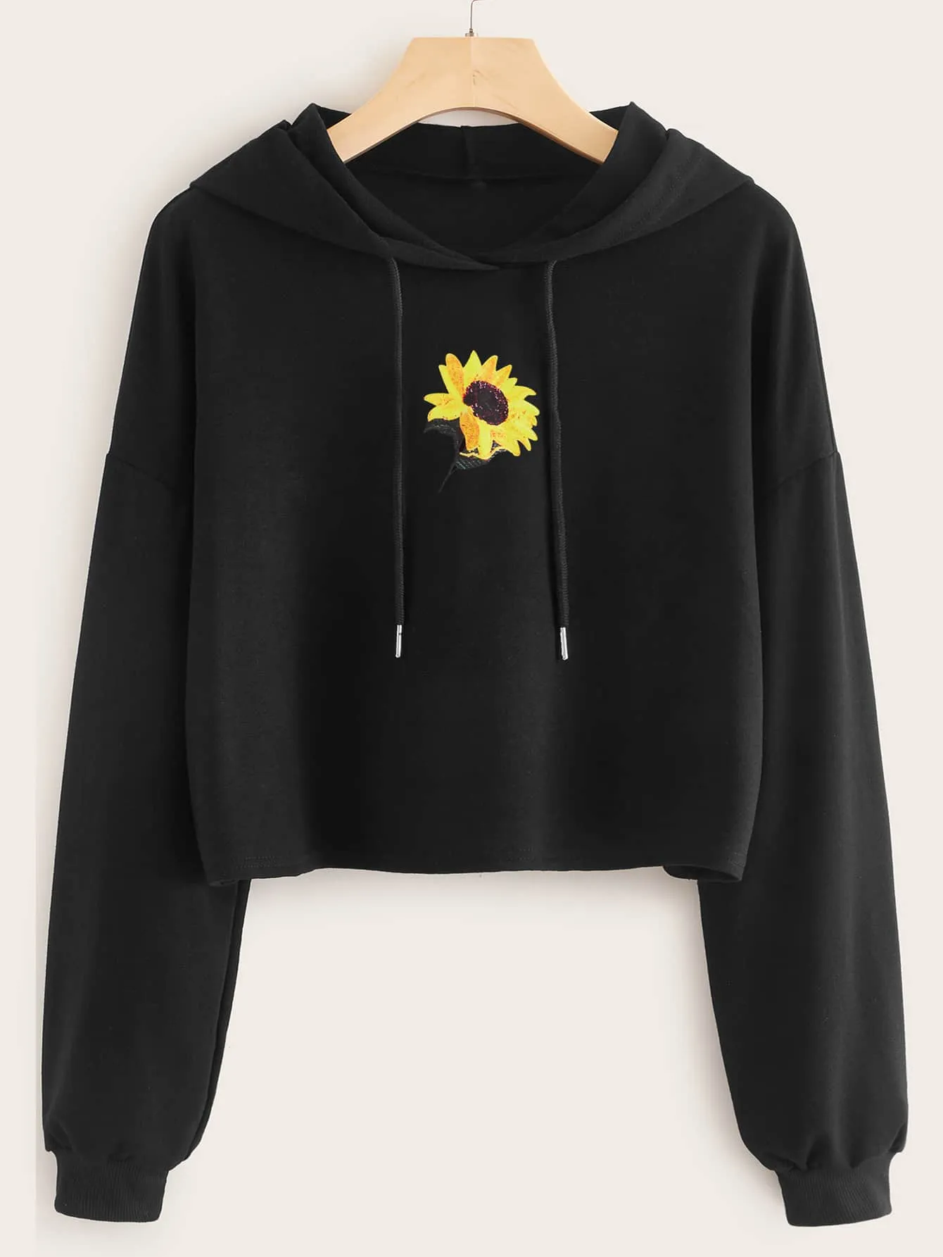 SMY Small Chrysanthemum Pattern Hooded Printed Short Hoodie