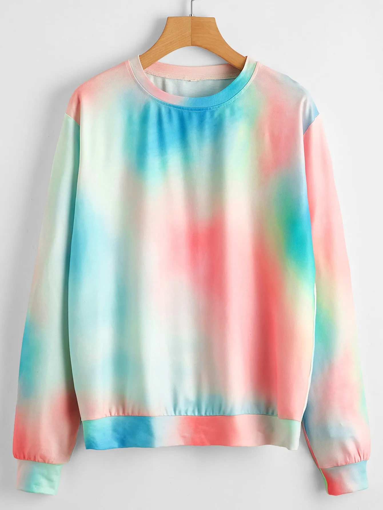 SMY Small Rainbow Gradient Round Neck Long Hoodie