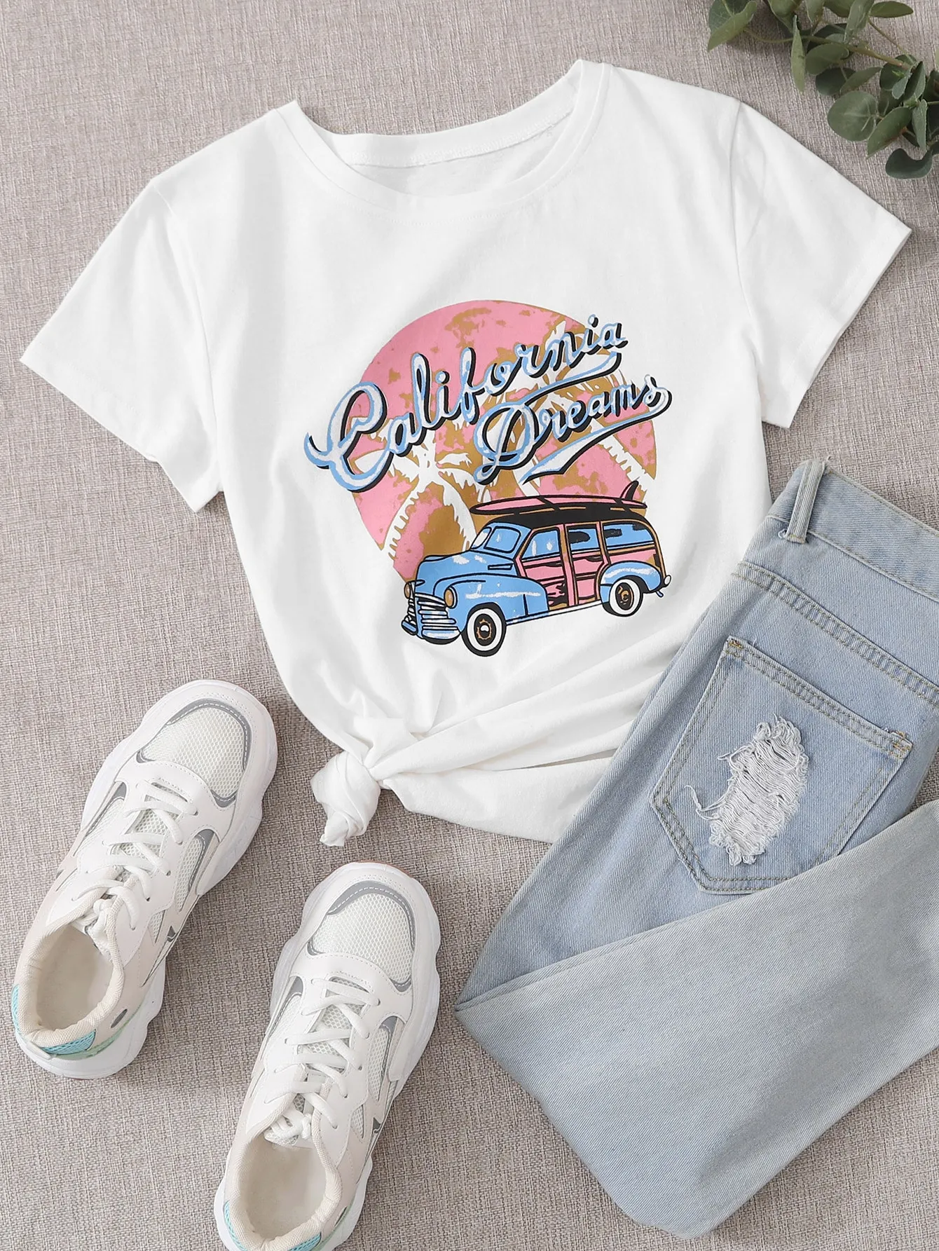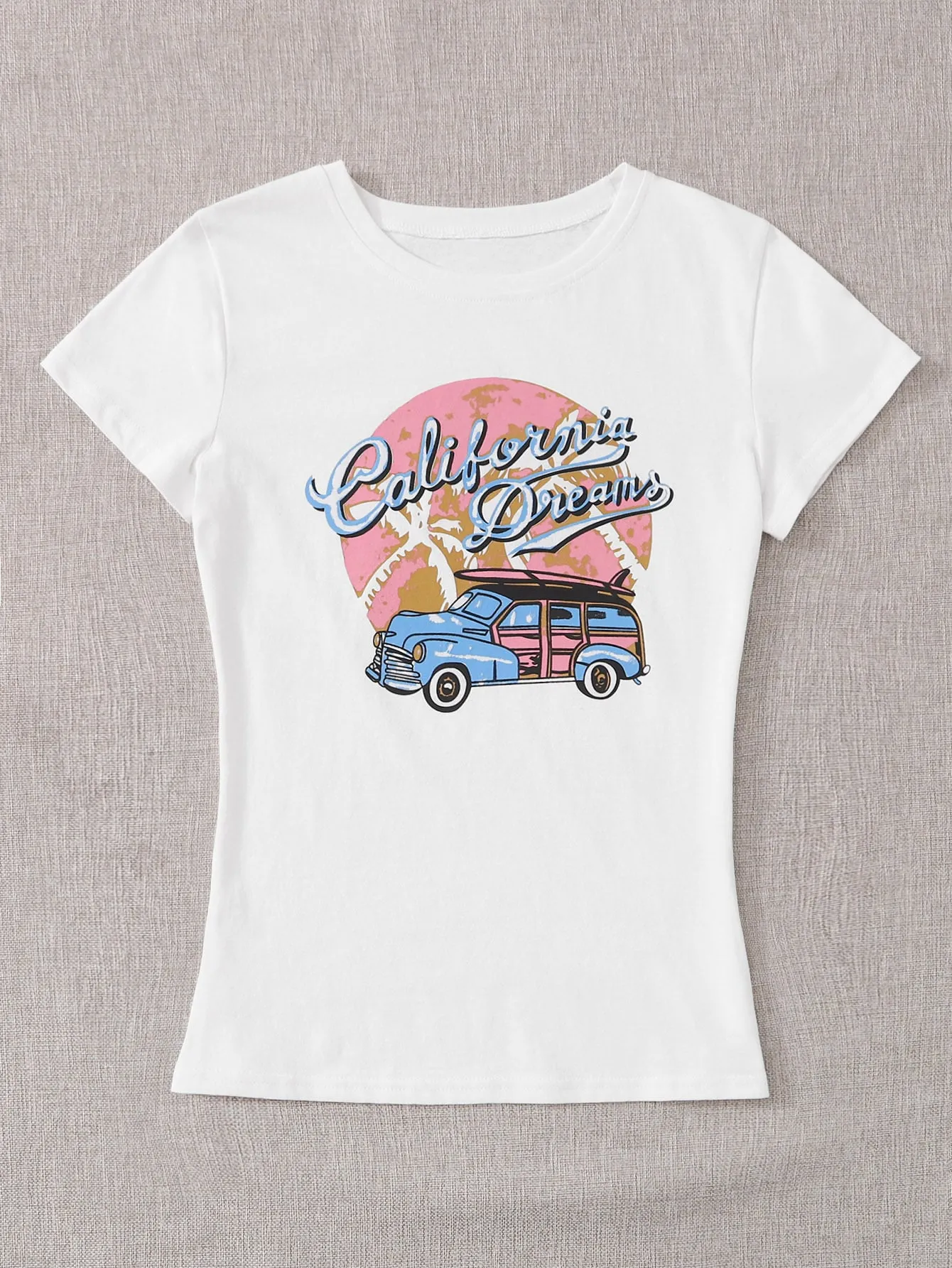 SMY Small Round Neck Simple Pattern California Dreams Plus Size T-Shirt