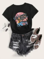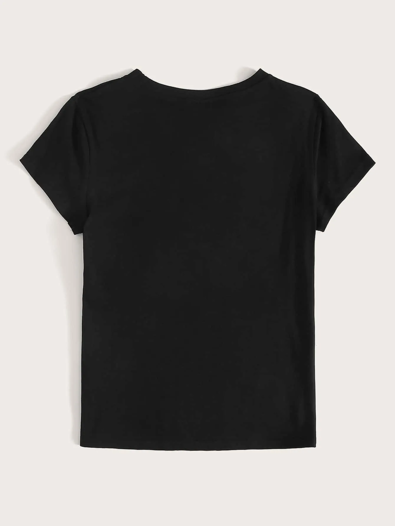 SMY Small Round Neck Simple Pattern Los Angeles Lettering Print Plus Size T-Shirt