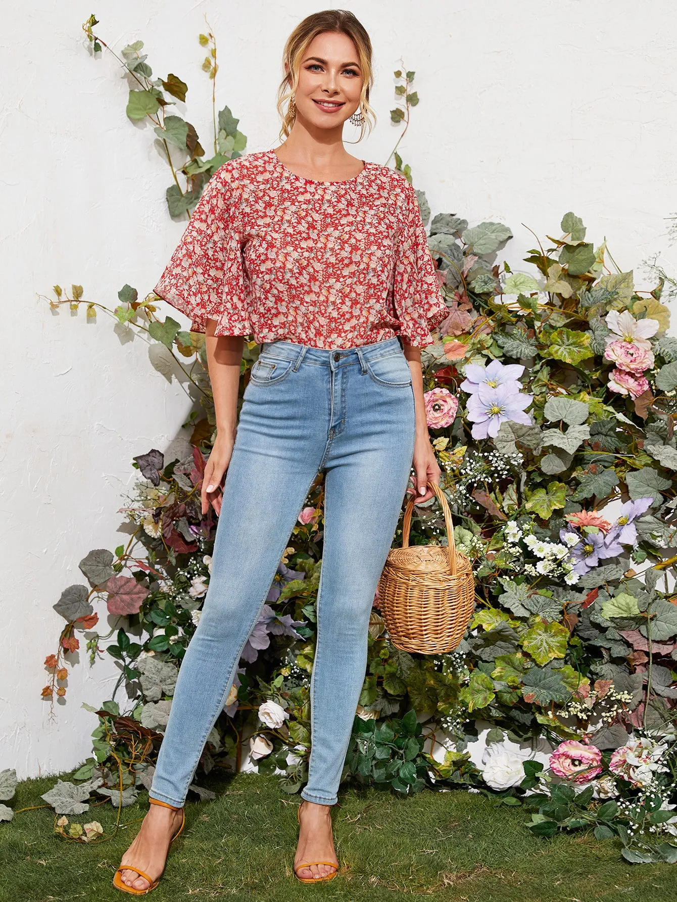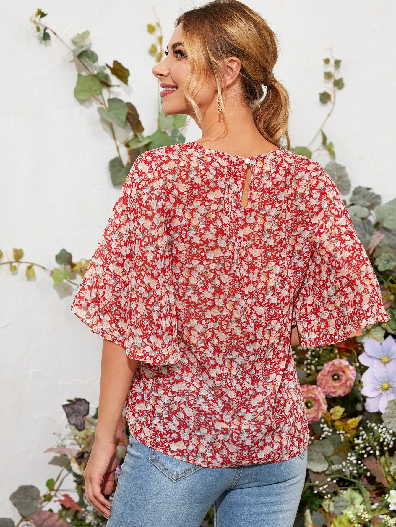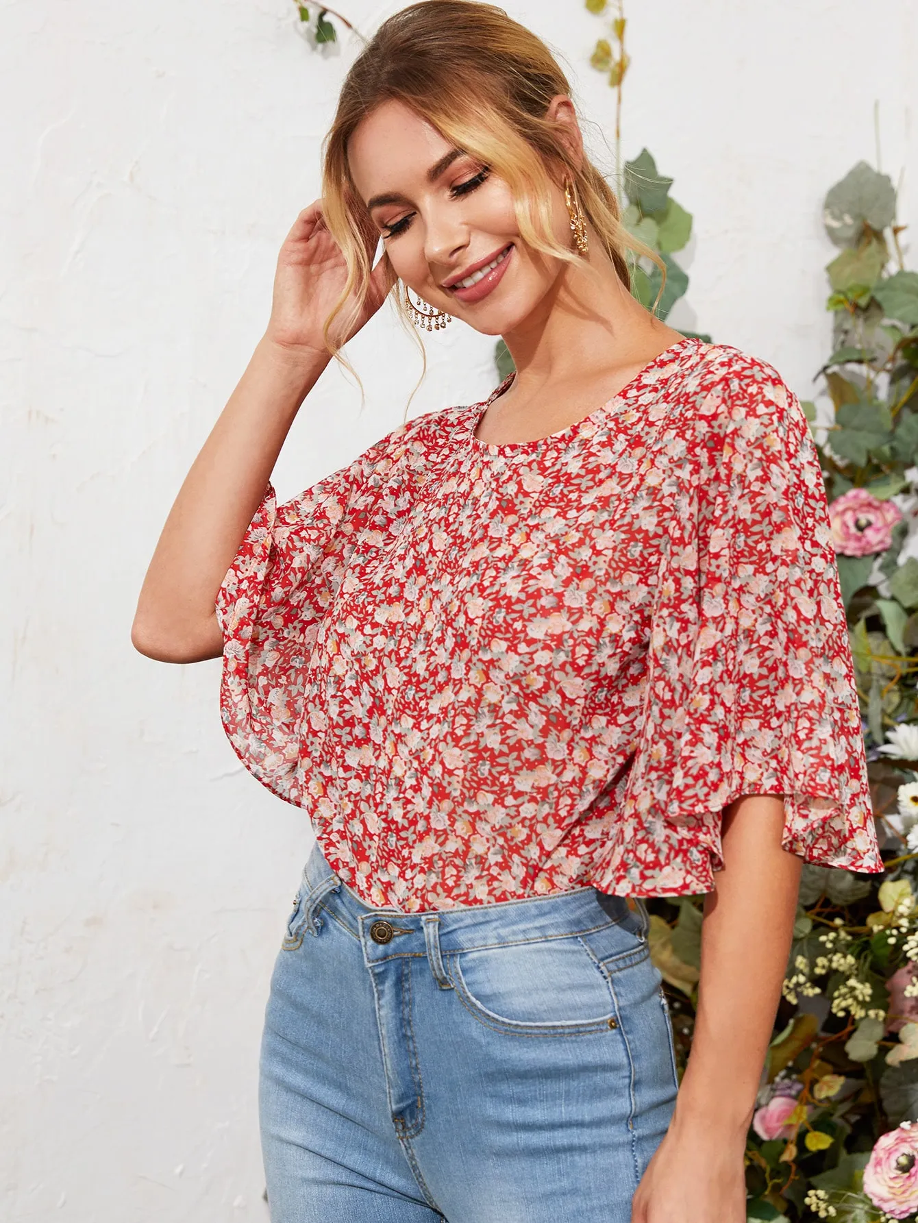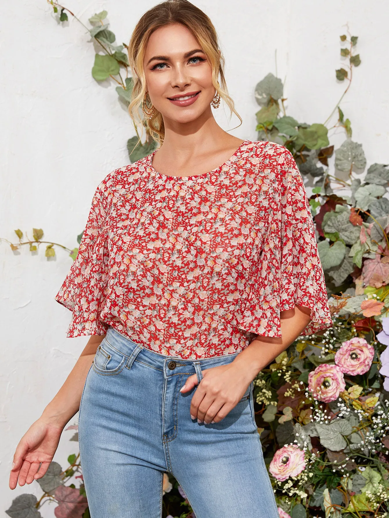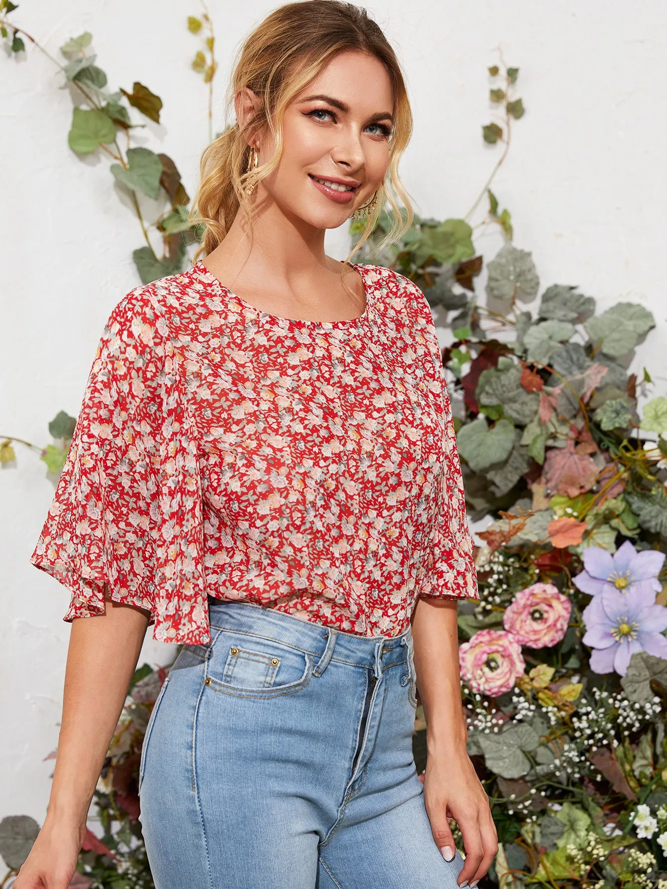SMY Small Round Neck Small Floral Shirt