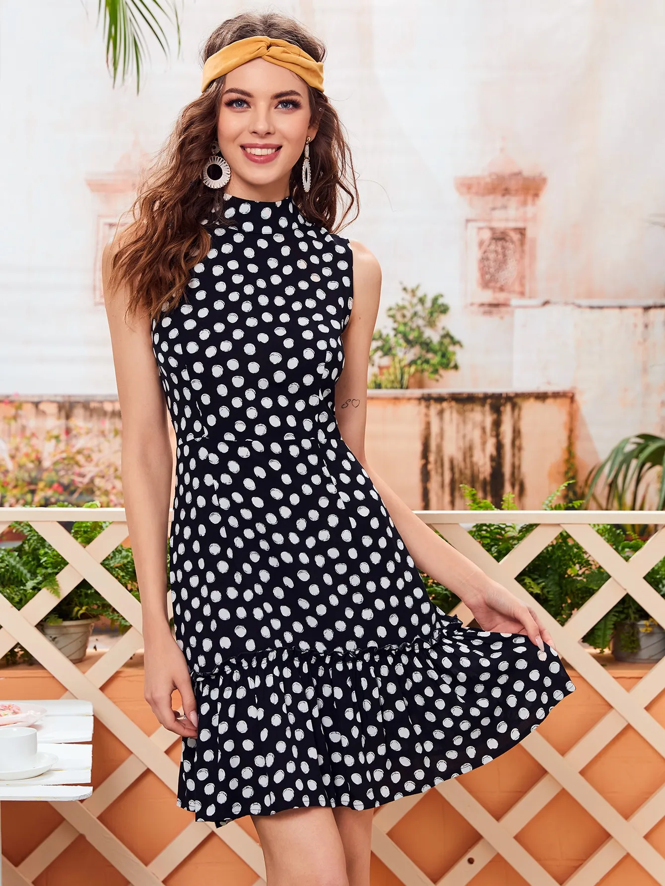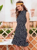 SMY Privé Women’s Solid Color Sleeveless Floral Embroidered Ruffle Hem Halter Tank Dress, Fashionable