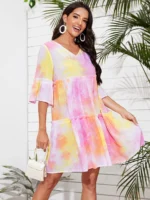 SMY Deep Lotus Leaf Edge V-Neck Dress $12.87
