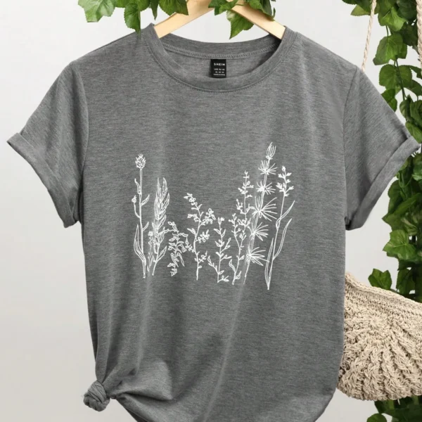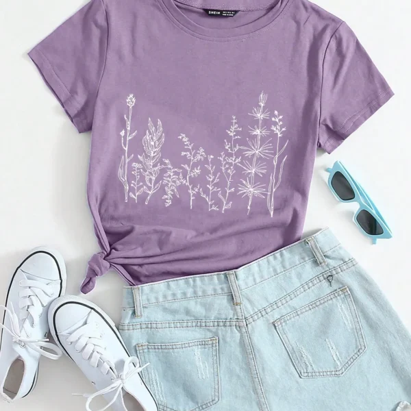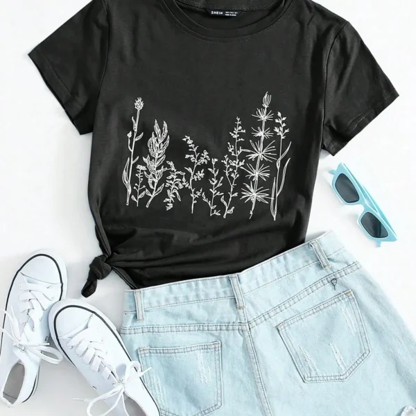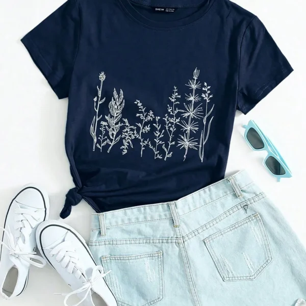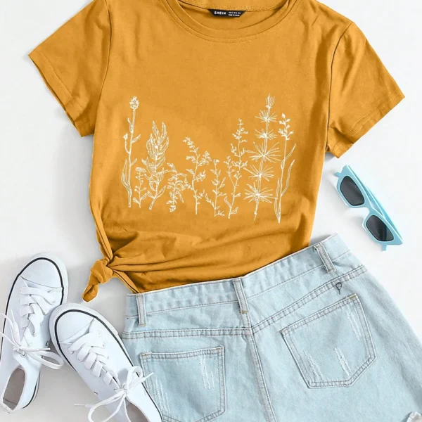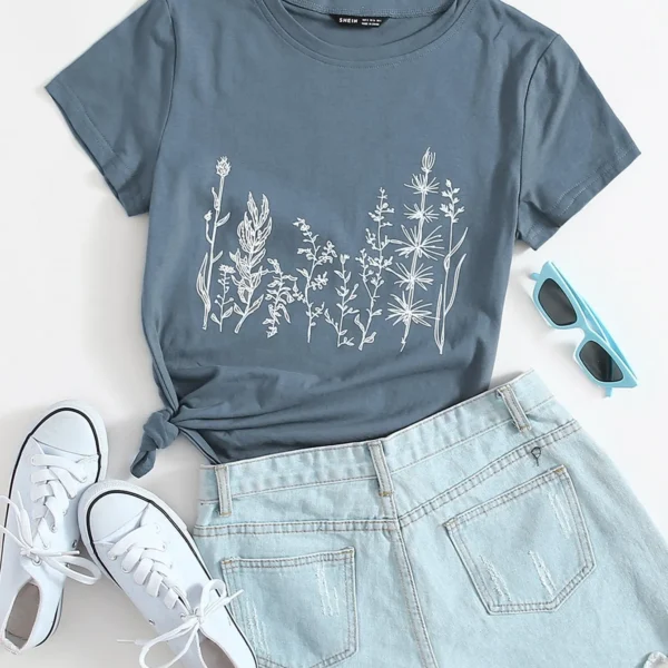 SMY Plant Print Round Neck Tee