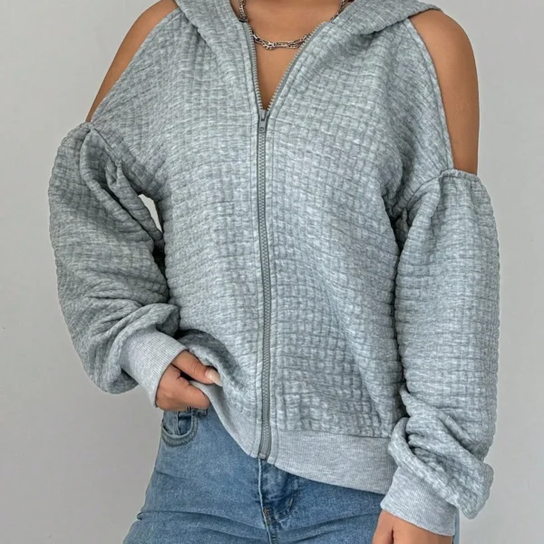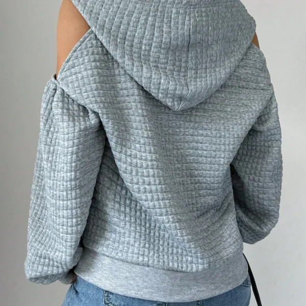 SMY Women’s Casual Hooded Sweatshirt With Cut-Out Shoulder Grid Pattern