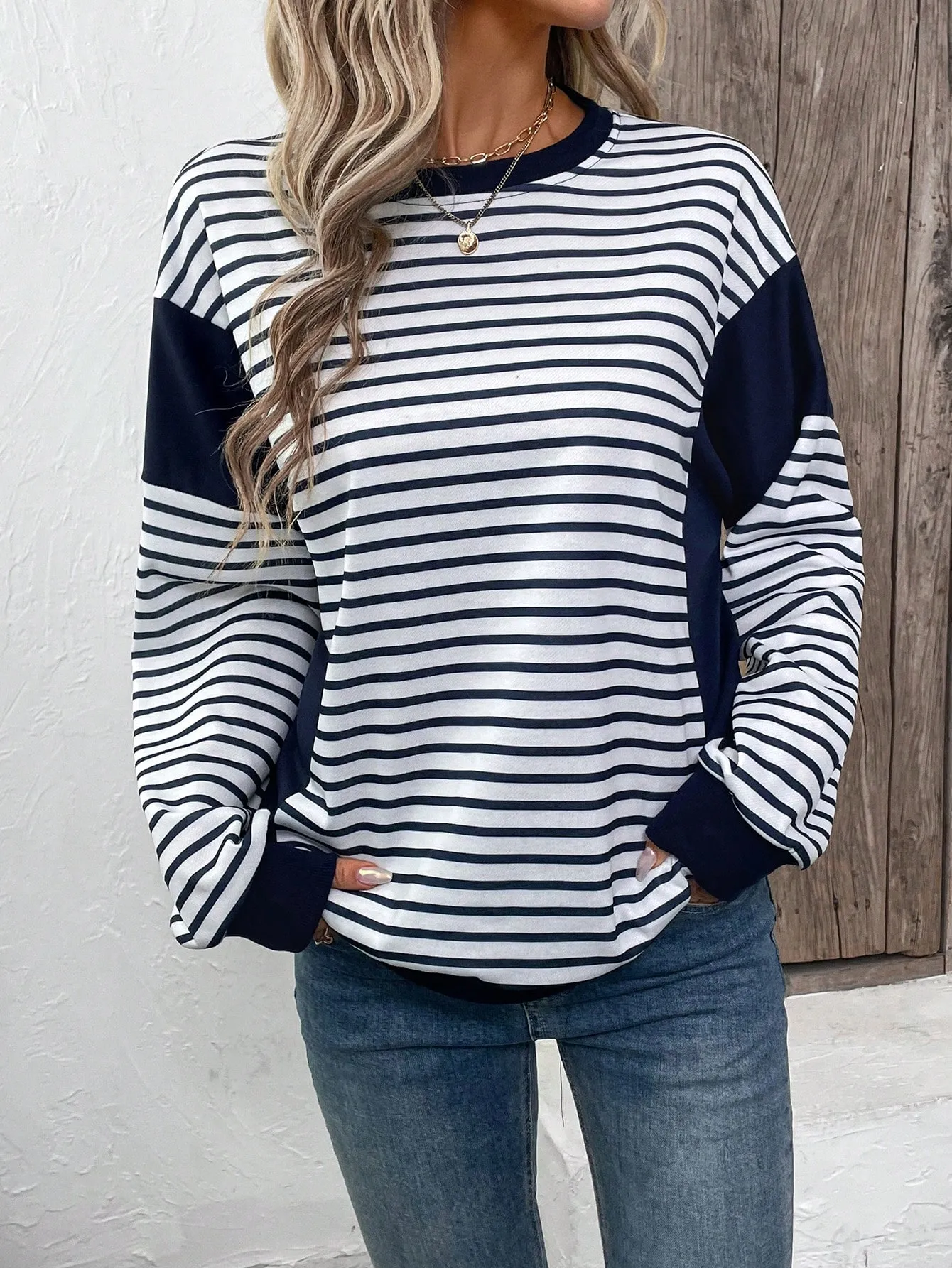 SMY Women’s Fashion Casual Striped Patchwork Sweatshirt
