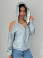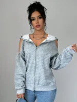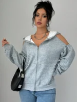 Be the first to review “SMY Women’s Casual Hooded Sweatshirt With Cut-Out Shoulder Grid Pattern” Cancel reply