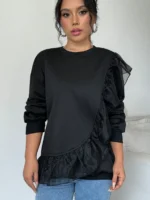 Be the first to review “SMY Women’s Casual Stitching Mesh Ruffled Pullover Sweatshirt , Black Sweatshirt” Cancel reply